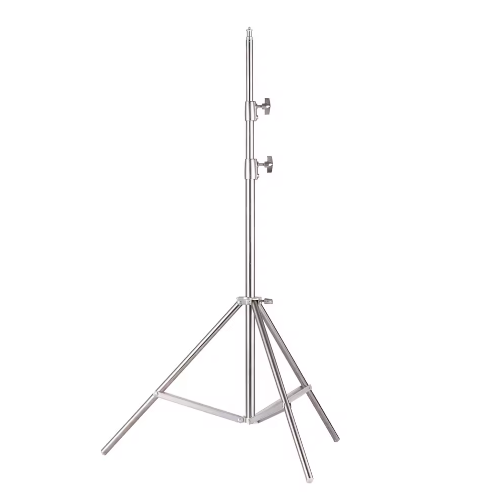 Tripé resistente e ajustável para equipamentos de iluminação em estúdio e fotografia profissional.